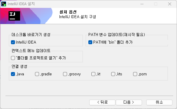 ✅ 연결 생성: 소스 코드,빌드 스크립트 파일 확장자를 IntelliJ IDEA와 연결합니다 (해당 파일 실행 시 IntelliJ IDEA 실행)