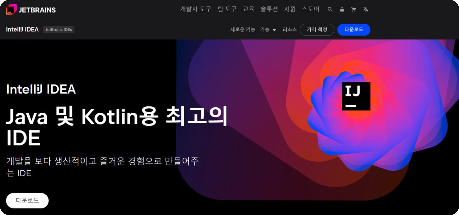 주로 Java 및 Kotlin 개발에 최적화되어 있으며 다양한 언어와 프레임워크를 지원하고 있고 개발 생산성을 높여주는 기능들을 제공합니다 자바를 주력 언어로 개발한다면 적극 추천하는 IDE입니다