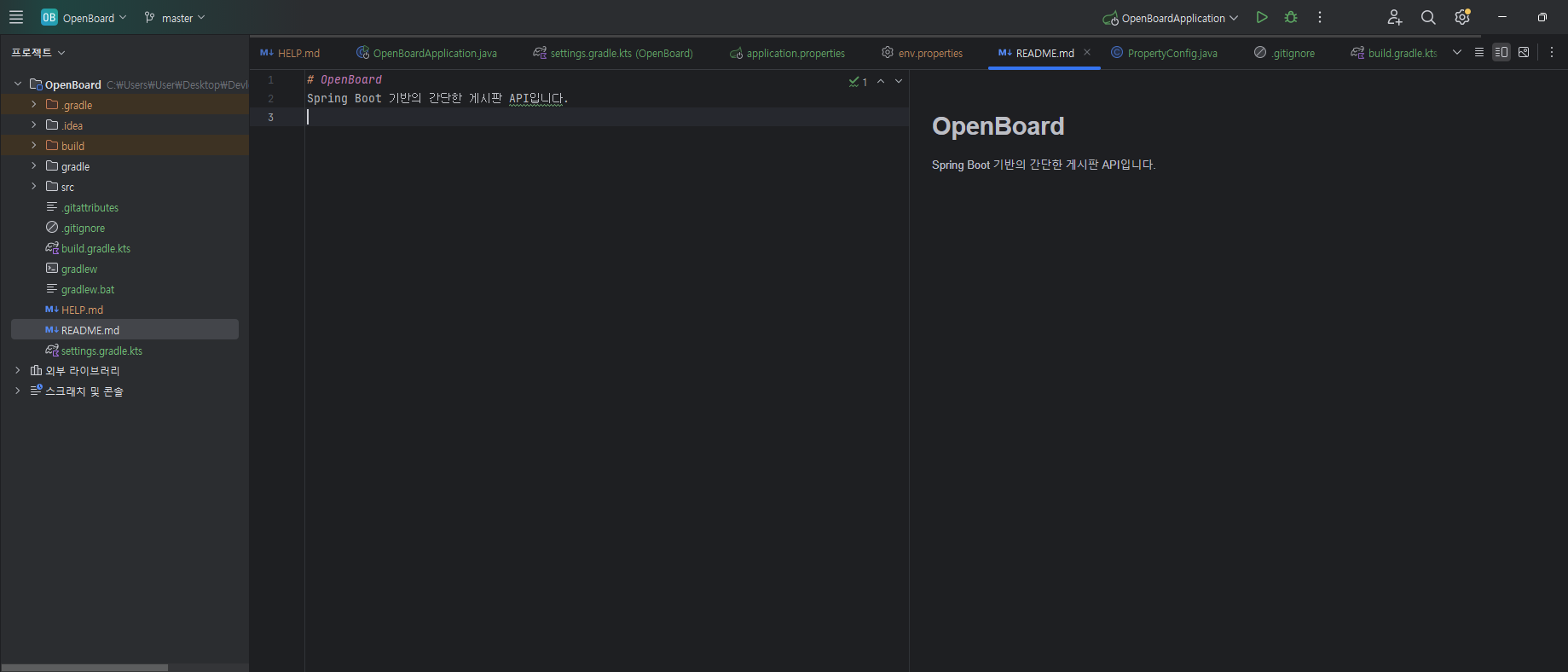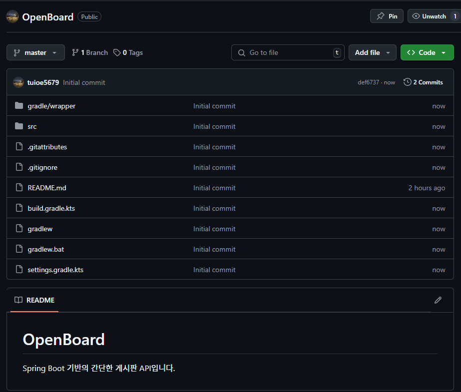 다음과 같이 README 파일도 포함시켜 생성했습니다