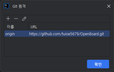 다시 인텔리제이로 돌아와서 git - 원격 관리를 눌러 Git 원격에서 + 버튼을 눌러 원격 저장소를 로컬 저장소와 연결해 줍니다