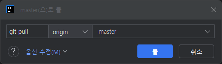 원격 저장소는 README.md 파일을 포함하고 있기 때문에 Pull 작업으로 로컬 저장소를 최신화 작업을 해야 합니다