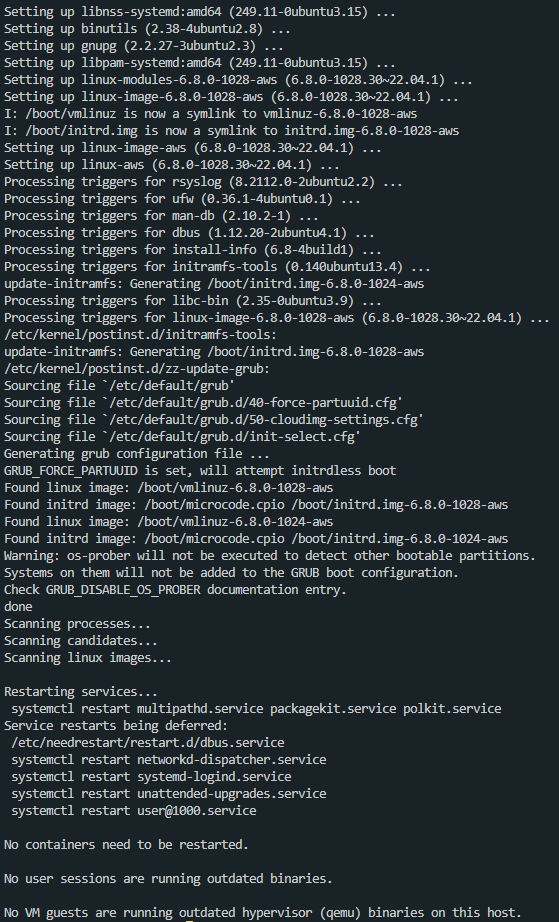 커널 업데이트가 이루어져서 인스턴스 재부팅을 해줍니다