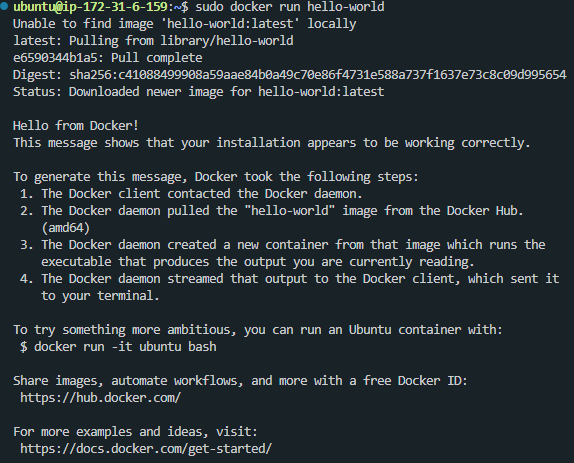 sudo docker run hello-world