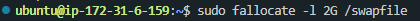 sudo fallocate -l 2G /swapfile