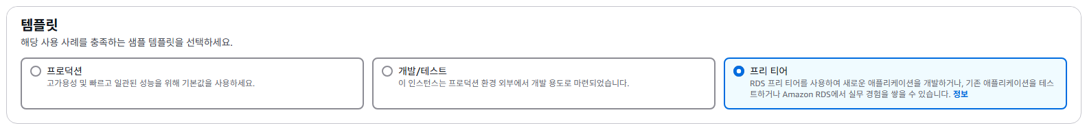 템플릿은 프리 티어를 사용하기 위해서 프리 티어를 선택