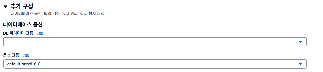 - 파라미터 그룹 이름: RDS와 동일하게 적용