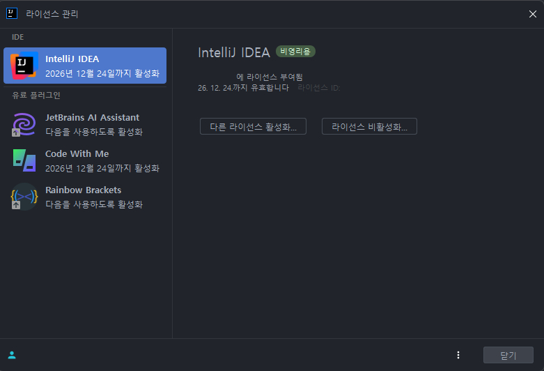 IntelliJ IDEA Ultimate 라이선스 재발급