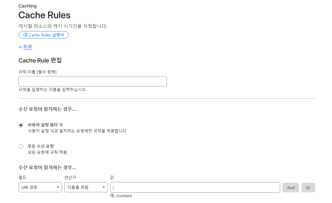 마지막으로 Cloudflrare Cache Rules를 통해 캐시 동작을 보다 명확하게 제어하도록 구성했다