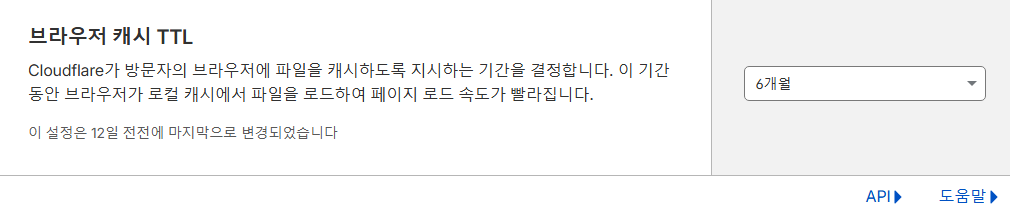 Caching → 구성에서 브라우저 캐시 TTL 또한 6개월로 설정해 주었다