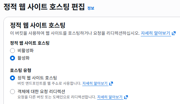 1. S3 정적 웹 사이트 호스팅 활성화