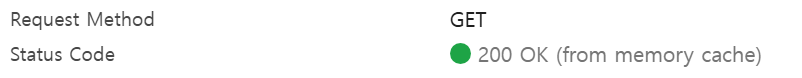 같은 이미지 리소스를 다시 요청했을 때는 네트워크 탭의 Status Code의 200 OK 옆을 보면 (from memory cache)가 출력된다