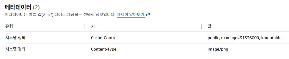 각 이미지 객체의 메타데이터에 다음과 같은 헤더로 설정했다