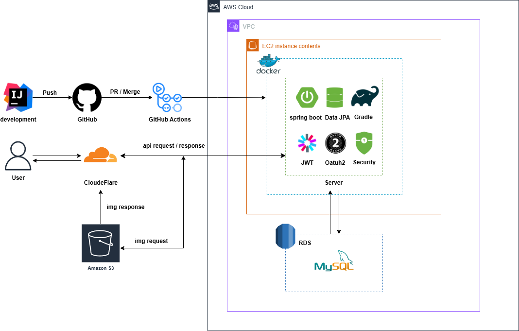 기존의 서버를 이미 Cloudflare(CDN) 도메인을 구입 후 적용하여 Cloudflare를 앞단에 배치하여 보안 및 트래픽 관리를 위임하고 있었기 때문에 동일한 구조를 활용하여 CDN 캐시 또한 Cloudflare를 통해 적용하려고 했다