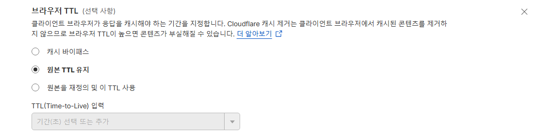 브라우저 캐시에 대해서는 원본 TTL 유지 옵션을 선택했다