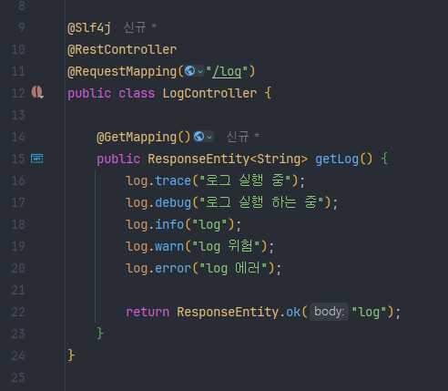 2. Controller에 로그 적용하여 출력하기