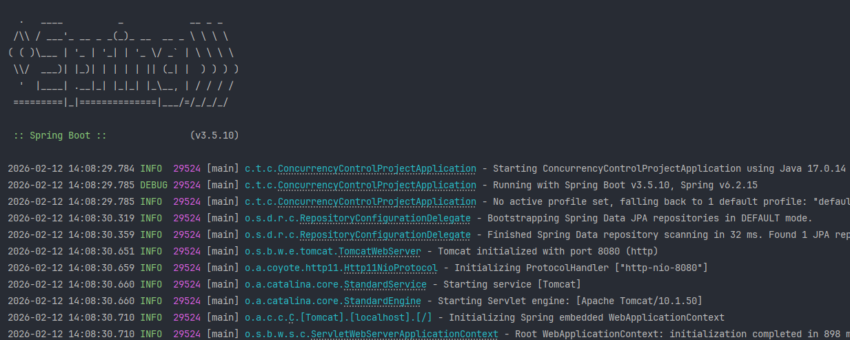 적용하고 프로젝트를 실행해보면 콘솔에서는 다음과 같이 출력된다