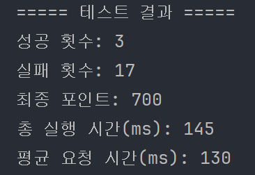 실제 테스트 결과 최종 포인트는 700 포인트로 확인되며 이는 (성공 횟수 * 차감 금액)과 정확히 일치한다