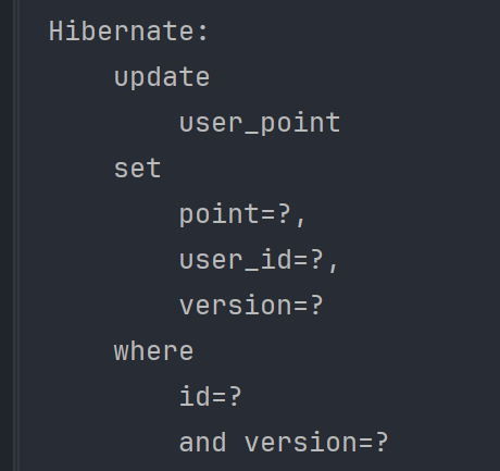 Hibernate가 생성한 UPDATE SQL을 확인해 보면 WHERE 절에 (and version = ?) 조건이 포함되어 있는 것을 확인할 수 있는데